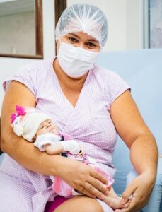 Até pouco mais de um ano atrás, a maquiadora Cléia da Silva, 37 anos, pesava 207 kg e tinha a saúde afetada por problemas como pressão alta e dores na coluna. “Eu não conseguia amarrar meus sapatos. Precisava trabalhar sempre sentada porque não conseguia nem andar direito. Decidi fazer algo por mim e conheci o serviço. Desde então, já perdi 130 quilos. Durante todo o processo, o atendimento da equipe foi maravilhoso, assim como o período de recuperação da cirurgia, que deu tudo certo”, contou.