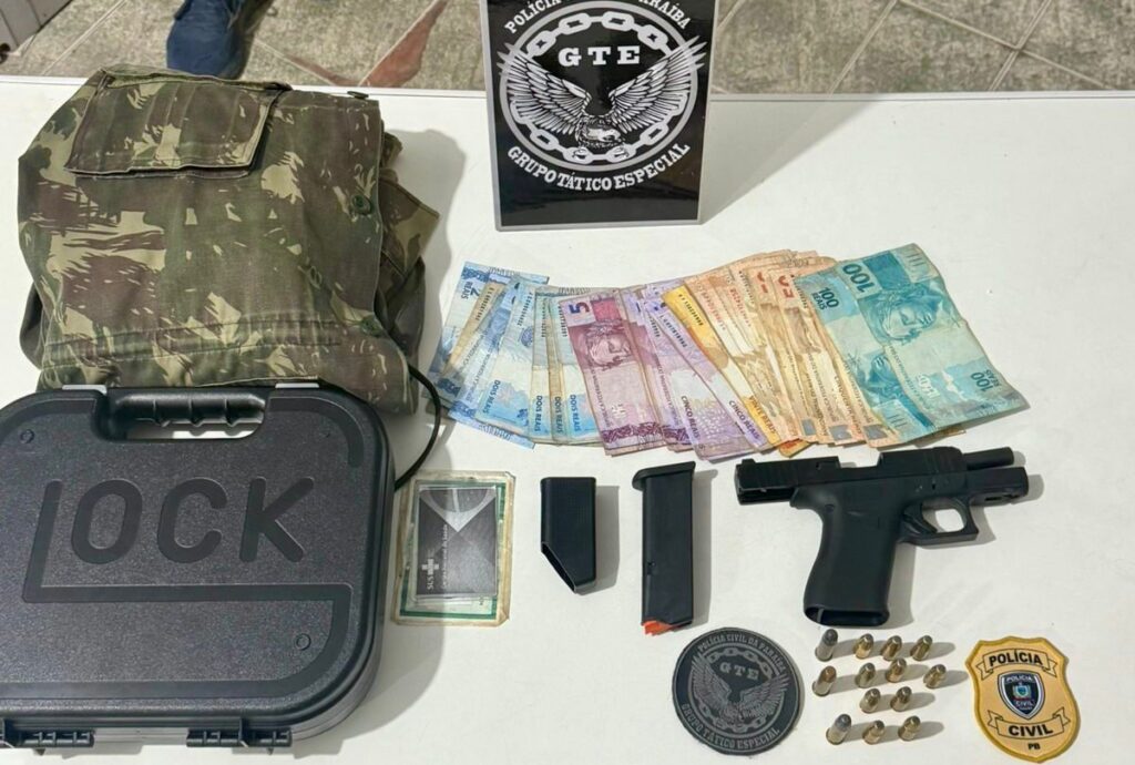 A Polícia Civil da Paraíba, por meio do Grupo Tático Especial (GTE) e da 12 Delegacia Seccional de Polícia Civil (DSPC), prendeu em flagrante, nesta segunda-feira (22), uma mulher suspeita de envolvimento no roubo a uma empresa localizada no município de Esperança-PB. Durante a ação criminosa, quatro indivíduos renderam vigilantes e subtraíram uma quantia em dinheiro, além de duas armas de fogo legalizadas pertencentes à empresa.