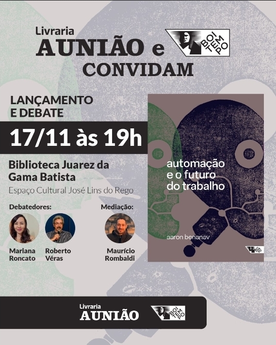 Livraria A União e Editora Boitempo lançam em debate o livro “Automação e o Futuro do Trabalho”, de Aaron Benanav