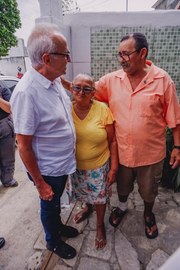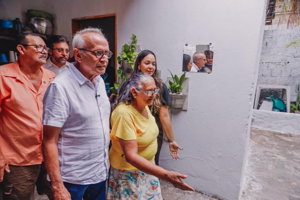 Beneficiados – No Jardim Veneza, seu Manoel dos Santos e dona Antônia dos Santos receberam o prefeito Cícero Lucena para um almoço especial. Eles foram contemplados pelo programa ‘Cuidar do Lar’, que garantiu uma reforma completa do imóvel. “Só agradecer a Prefeitura por esse cuidado. A gente não tinha condições de fazer uma reforma como essa. Graças a Deus a gente está seguro”, afirmou Manoel.