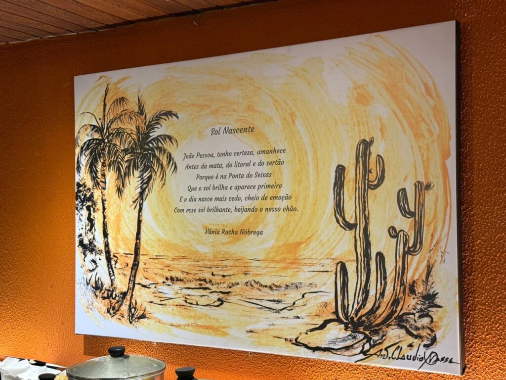 Com casa lotada, incluindo a presença de turistas de todo o país, a abertura da exposição apresentou um conjunto de obras originais com técnicas variadas de três artistas plásticos. Algumas obras ampliadas em imagens “fine art” foram associadas a versos de três poetas, formando um conjunto estético que destaca as técnicas de cada artista e decantam o sol nascente banhando paisagens e elementos marcadamente paraibanos.
