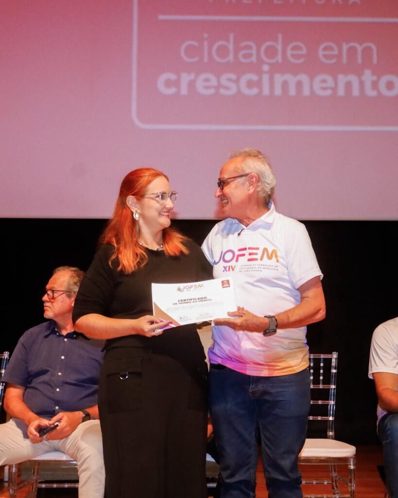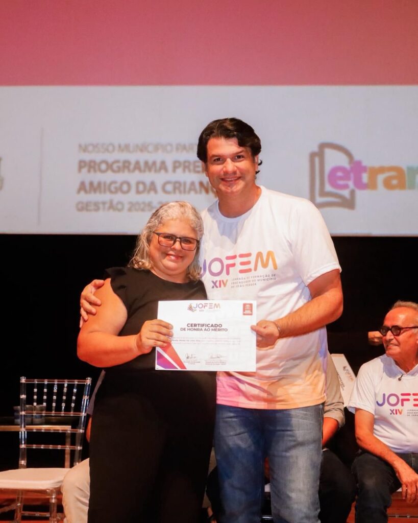 Mais reconhecimento e valorização – Ainda durante a Jofem, o prefeito Cícero Lucena entregou certificados de reconhecimento e premiação aos professores destaques do Fundamental I – os três primeiros colocados de cada ano escolar – do 1º até o 5º ano. Maria Sueli, da Escola Lucia Geovana, no Colinas Sul, agradeceu a premiação e também celebrou o percentual de aumento anunciado pelo prefeito.