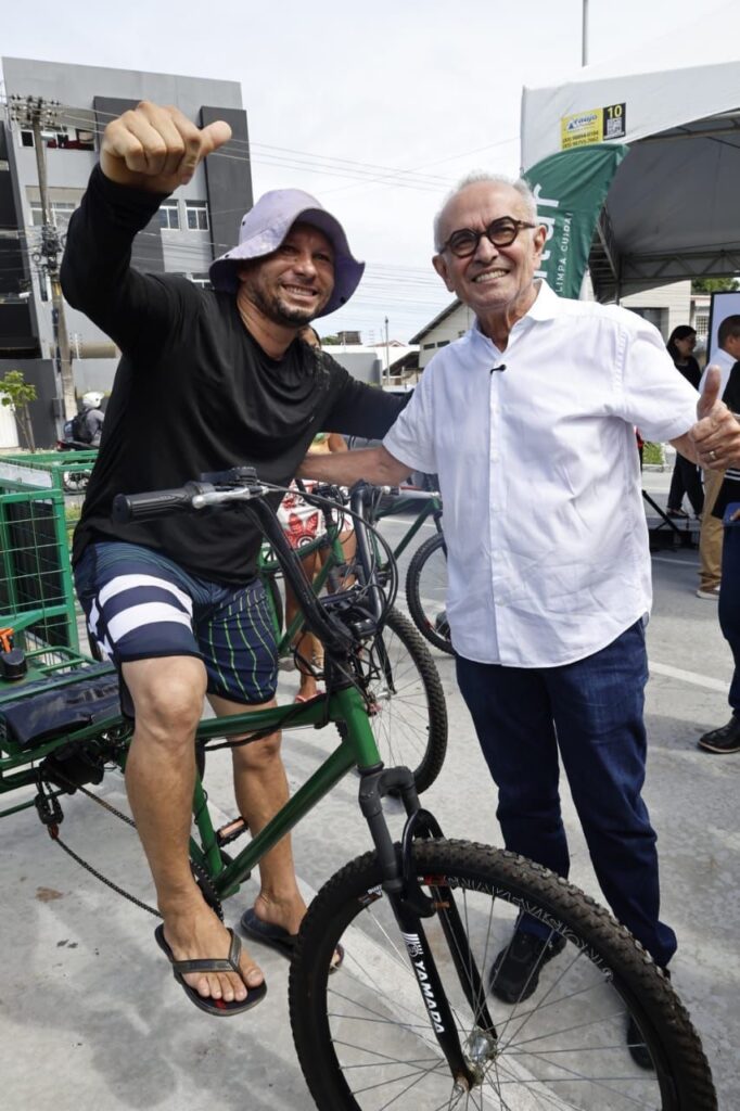A Prefeitura de João Pessoa segue avançando na política de coleta de resíduos sólidos de forma sustentável e humanizada. Como parte desse processo, a gestão municipal vem substituindo gradativamente os veículos de tração animal pelas chamadas “recicletas” — triciclos adaptados para a coleta de materiais recicláveis, que garantem mais dignidade aos trabalhadores e reduzem os impactos ambientais na cidade. Nesta quarta-feira (11), o prefeito Cícero Lucena realizou a entrega de 20 novos equipamentos à Associação dos Catadores, ampliando para 60 recicletas já disponibilizadas pela Prefeitura desde o início da gestão.