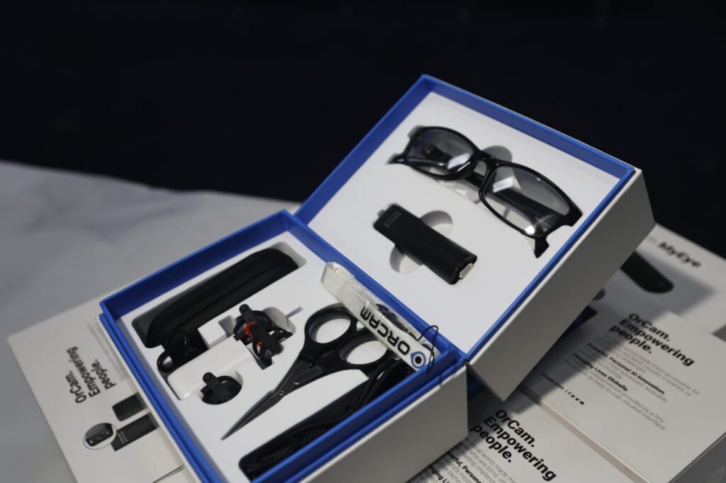Orcam MyEye – Óculos inteligente que consiste em uma câmera intuitiva que pesa apenas 22,5 g e mede 7,6 cm por 2,1 cm. Acoplada à armação dos óculos do usuário, e é capaz de detectar textos em português, inglês e espanhol, seja em livros, revistas, jornais, cardápios, documentos, placas de ruas, textos no celular, tablets e computadores, embalagens, letreiros de lojas e placas indicativas, por exemplo. Sua velocidade pode ser controlada, possibilitando a leitura de 100 a 250 palavras por minuto; permite escolher entre voz masculina e feminina; e tem comandos para pausar, adiantar ou retroceder a leitura – tudo isso offline.
