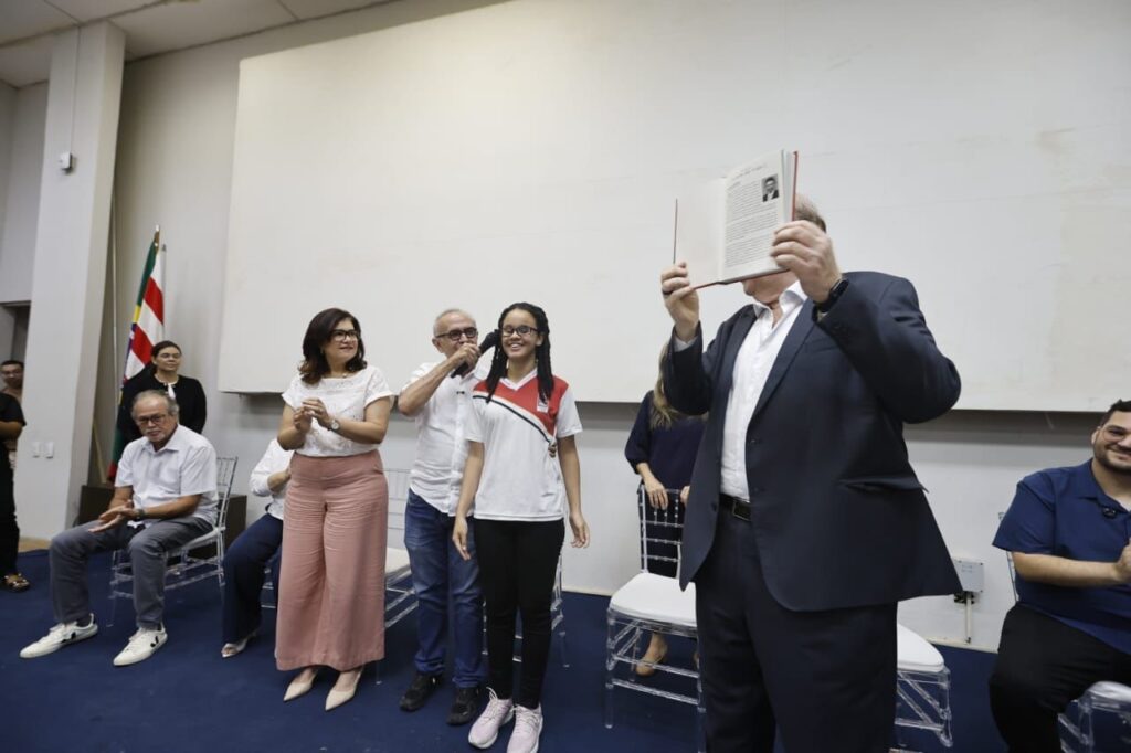 “Reconheço a oportunidade de que o serviço público, em especial a área da educação, seja de alta qualidade e promova a inovação, que transcende a incorporação de tecnologias, como os recursos de acessibilidade que facilitam a educação em Braille. Ela reside, sobretudo, na transformação da metodologia educacional. Uma abordagem mais humanizada, com visão de futuro, comprometida com o envolvimento e o engajamento dos alunos. Essa é a realidade que a educação municipal de João Pessoa vivencia atualmente”, afirmou o prefeito durante a solenidade em que entregou, de forma simbólica, um dos óculos inteligentes para a aluna Maria Eloise, da Escola Rodrigo Otávio.