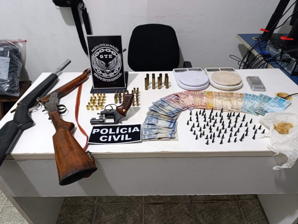 A Polícia Civil da Paraíba, por meio do Grupo Tático Especial (GTE) da 12ª Delegacia Seccional de Polícia Civil (DSPC), prendeu em flagrante, nesta sexta-feira (13), um homem suspeito de tráfico de drogas e posse ilegal de armas de fogo no município de Algodão de Jandaíra.