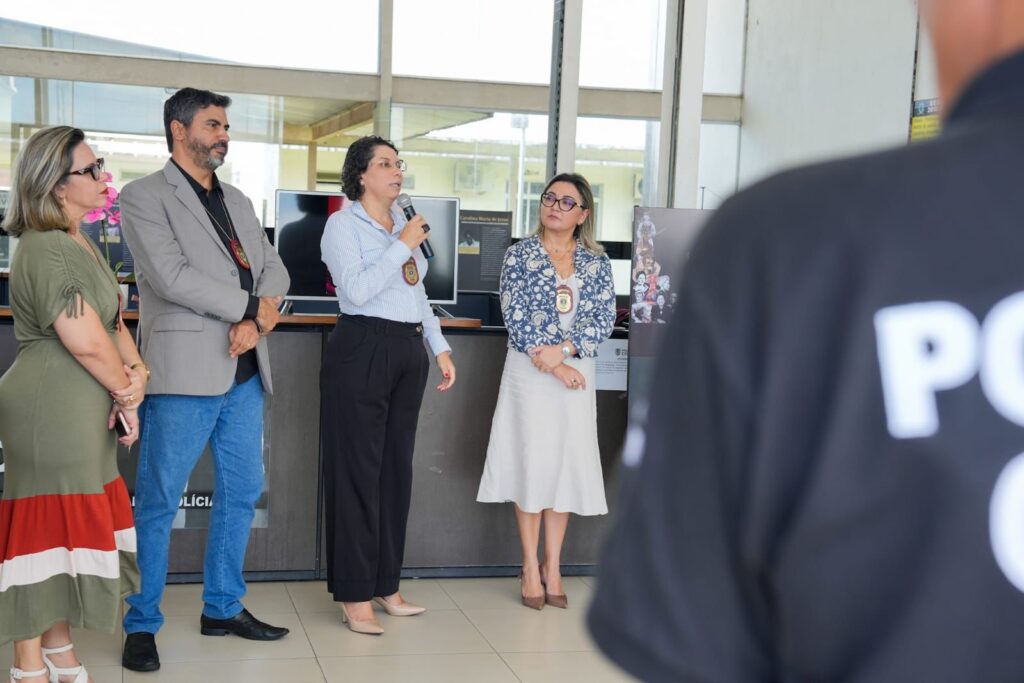 A Polícia Civil da Paraíba, por meio da Coordenação das Delegacias Especializadas de Atendimento à Mulher (COORDEAM/PB), em parceria com o Ministério Público Federal (MPF), realiza nesta segunda-feira (16) o lançamento da exposição “Mulheres Invisibilizadas”, na Cidade da Polícia Civil, em João Pessoa. A iniciativa integra as ações institucionais voltadas à reflexão e ao enfrentamento da violência contra a mulher. Durante o lançamento, estiveram presentes a delegada geral-adjunta da Polícia Civil, Cassandra Duarte; a coordenadora das Delegacias Especializadas de Atendimento à Mulher, Sileide Azevedo; a diretora geral da Acadepol, Maísa Félix; e a segunda dama do Estado da Paraíba, Camila Mariz.