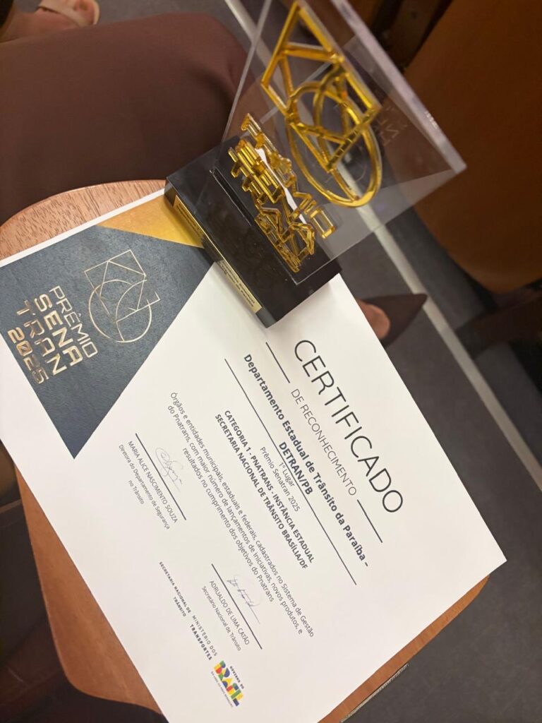 Prêmios Senatran – Pelo segundo ano consecutivo o Detran da Paraíba foi campeão na Categoria Pnatrans. Assim, um dos destaques do seminário foi a entrega do Prêmio Senatran 2025, em que o órgão da Paraíba ficou novamente em 1º lugar na Instância Estadual, com maior número de lançamentos de iniciativas, novos produtos e resultados no cumprimento dos objetivos do Plano Nacional de Redução de Mortes e Lesões no Trânsito (Pnatrans).