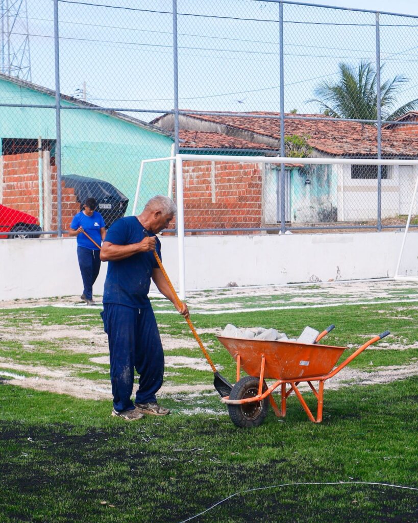 De acordo com a Secretaria de Infraestrutura (Seinfra), a execução da obra já passa de 72% e o investimento é de R$ 2,2 milhões. Estão sendo realizadas ainda instalações hidráulicas e elétricas, com implantação de refletores e iluminação ornamental em LED. O projeto também assegura acessibilidade, com rampas, banheiros adaptados e piso tátil. Estão em andamento serviços como a execução da rampa de acesso ao vestiário, aplicação de piso intertravado e espalhando a borracha no campo.