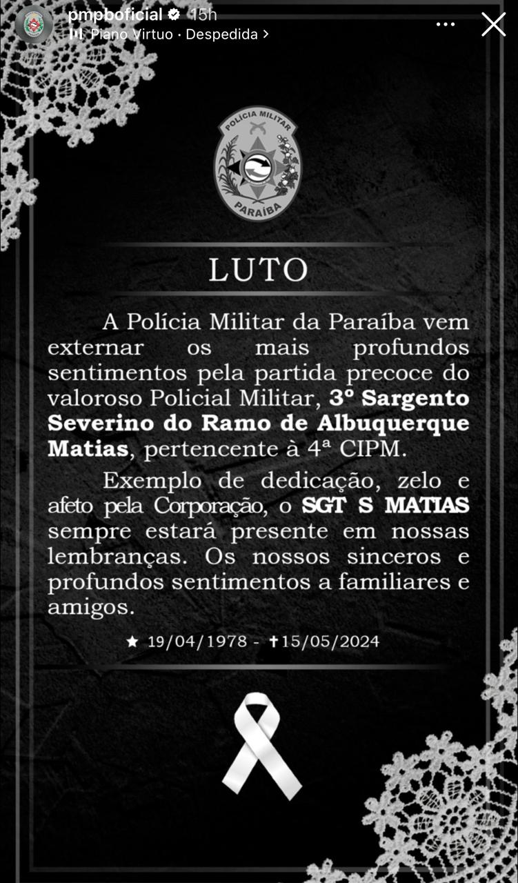 É com profundo pesar que a 4ª Companhia Independente de Polícia Militar (4ªCIPM) comunica e lamenta o falecimento do Sargento Severino do